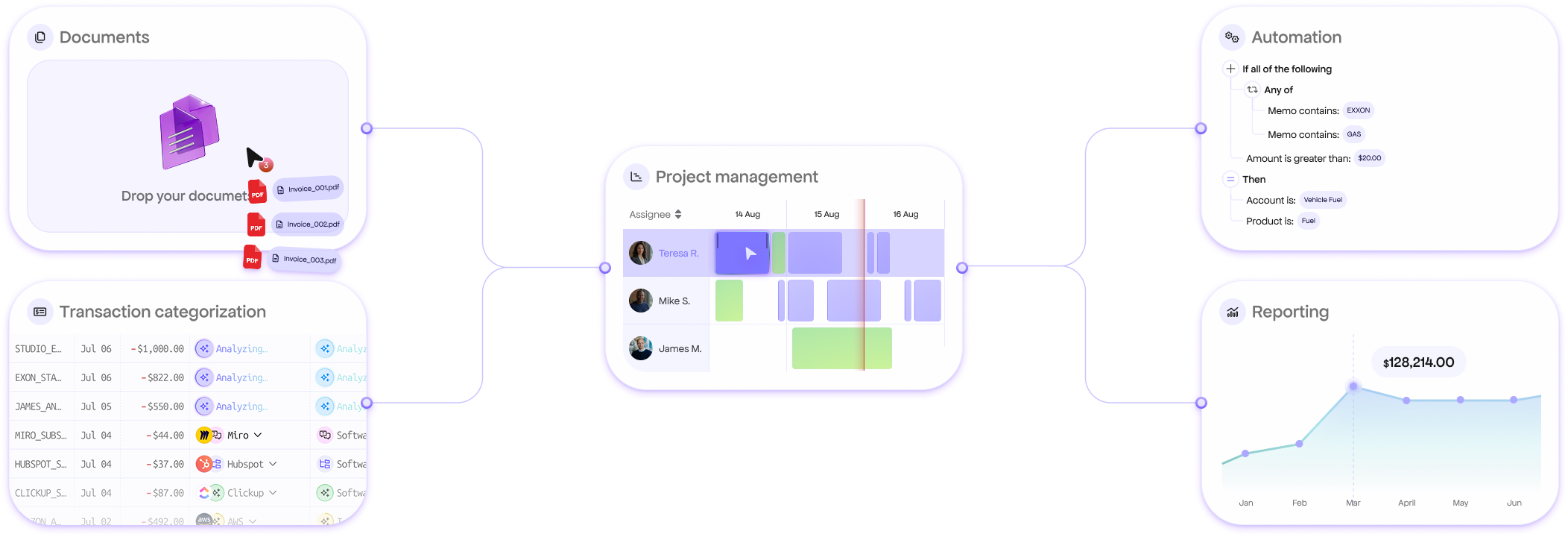 Reconcile your transactions faster with suggestions ready to be reviewed and all the context you need from your team, client, automation, and past transactions analysis.